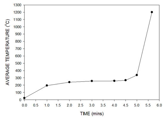 In the current experiments, the desired objective would be to dewater the ore and achieve a significant reduction in the compressive strength index. This can be accomplished by attaining a stable and uniform temperature of at least 500 °C in the microwave system. The steepest ascent method can be utilized to achieve this desired objective at the fastest rate by changing all the significant factors and interactions at the same time. However, in the present research, there are limits for some of the variables. Bulk density has a negative influence on the sample temperature and was fixed at the lowest value of 0.6048 g/cm3. Power has a positive effect but was limited by the equipment at 1300 W. The maximum sample mass of 35 g was the maximum crucible capacity. The heating time could be varied without limit. The substitution of 0.6048 for X4 in Equation (9) gives the following regression model: