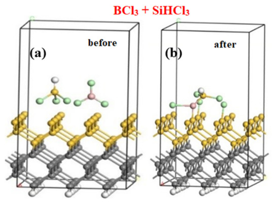 Structure changes before (a) and after (b) the co-adsorption of BCl3 and SiHCl3.