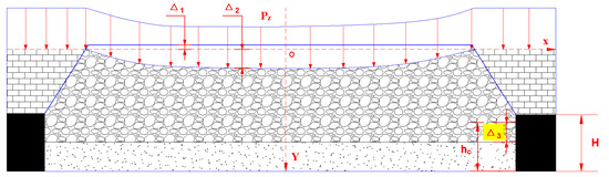 Due to the elasticity, the paste filling body will be compressed and deformed by dual actions of gravity of the caving immediate roof and subsequent roof pressure [9,32,33]. The amount of compression of paste filling body can be obtained by: