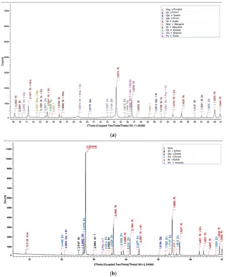 Even though metal recycling is becoming a worldwide trend, it still falls short of meeting the demand due to low recycling rates. Furthermore, there are no efficient alternatives to some metals, such as titanium, rare earth elements (REE), zirconium and hafnium. Therefore, new exploration resources must be discovered and exploited in order to obtain these minerals [1,2]. Furthermore, certain modern technologies (electronic devices, electric vehicles) necessitate the use of specific metals, without which these technologies would not have progressed as far as they have. As the European Union is dependent on the import of raw materials, some of them have been recognized by the European Commission as critical (e.g., REE, Ti) [3,4]. As a result, heavy minerals, such as monazite, rutile, ilmenite, are regarded as important [2]. Heavy minerals (HM) are minerals (rock forming, accessory, i.e., ore minerals) with high specific gravity (SG > 2.9 g/cm3). As they are weather resistant, such as rutile, magnetite, ilmenite, zircon, monazite, garnets, cassiterite, tourmalines, pyroxenes, and staurolite, these minerals are concentrated in siliciclastic sediments. Due to their utility in industrial goods, such as pigments (ilmenite, rutile and leucoxene), ceramics (zircon), abrasives (garnet) or in the recovery of high-value components, such as rare earth oxides, these heavy minerals have been recognized as valuable heavy minerals (VHM). Valuable heavy minerals (VHM) could be recovered for commercial use as marketable products if the individual product concentrations matched market standards [5,6].