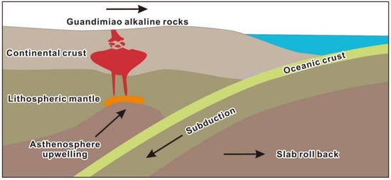 Evolution of the alkaline rocks in the Guandimiao area during the Early Cretaceous [76,77,78].