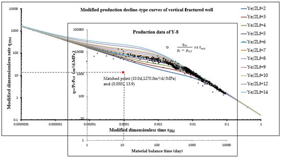 Type curves matching with the actual data of the vertically fractured well Y-8.