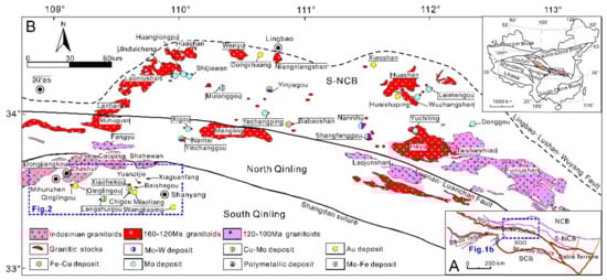 - Zheng, J.; Zhu, L.M.; Jiang, H.; Xiong, X.; Liu, K.; Zhao, D.H.; Li, Z.H.; Yang, Z.T.; Wang, H.; Peng, X. A comparisonal study on the indosinian and yanshanian granites of the Zhashui-Shanyang ore cluster district in the southern Qinling, China. Bull. Mineral. Petrol. Geochem. 2015, 34, 1155–1172. [Google Scholar]