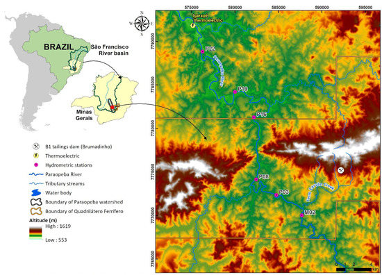 26. do Brasil, C.S.G. Monitoramento Especial da Bacia do Rio Paraopeba-Relatório IV; CPRM: Belo Horizonte, Brazil, 2019. Available online: http://www.cprm.gov.br/sace/conteudo/paraopeba/RT_01_2019_PARAOPEBA.pdf (accessed on 9 December 2021).