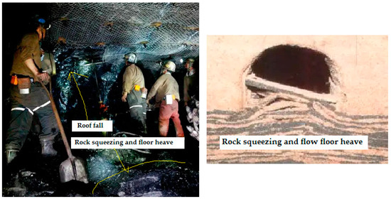- Liu, Q.S.; Liu, X.W.; Huang, X.; Liu, B. Research on the Floor Heave Reasons and Supporting Measures of Deep Soft-Fractured Rock Roadway. J. China Coal Soc. 2013, 38, 566–572. [Google Scholar]