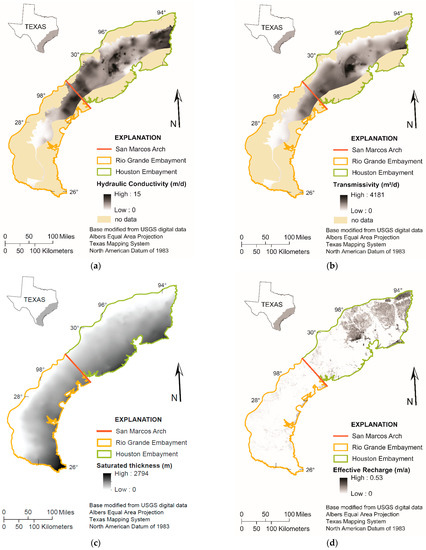 - Young, S.C.; Knox, P.R.; Baker, E.; Budge, T.; Hamlin, S.; Galloway, B.; Kalbouss, R.; Deeds, N. Hydrostratigraphy of the Gulf Coast Aquifer from the Brazos River to the Rio Grande; Texas Water Development Board: Austin, TX, USA, 2010; p. 203. Available online: https://www.twdb.texas.gov/publications/reports/contracted_reports/doc/0804830795_Gulf_coast_hydrostrati.graphy_wcover.pdf (accessed on 12 October 2021).