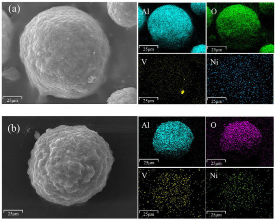 Under various conditions when using SFCC catalysts, vanadium may exist in different oxidation states (+5, +4 or +3), which depend on the reaction unit environment or the regeneration mode. Which oxidation state of vanadium is dominant depends largely on the catalyst distribution in the regenerator and on the mode of operation (partial or full combustion). According to previous studies, it is apparent that the poisonous effects of vanadium depend on its oxidation state: V3+ is harmless, V4+ is less harmful, and V5+ has an obvious destructive effect on zeolites [15]. Vanadium is first deposited on the surface of the FCC catalyst and then migrates to the inside of the particles. Therefore, vanadium is consistently distributed throughout the catalyst particles, and this can be ascribed to its mobility.
