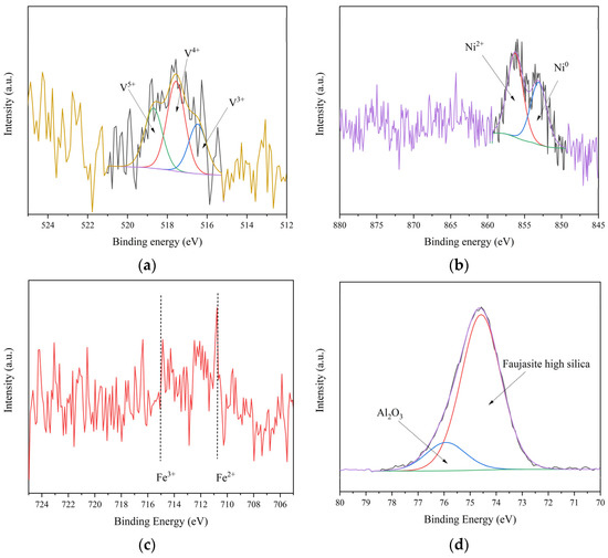 XPS spectra of SFCC catalysts: (a) V2p, (b) Ni2p, (c) Fe, and (d) Al.