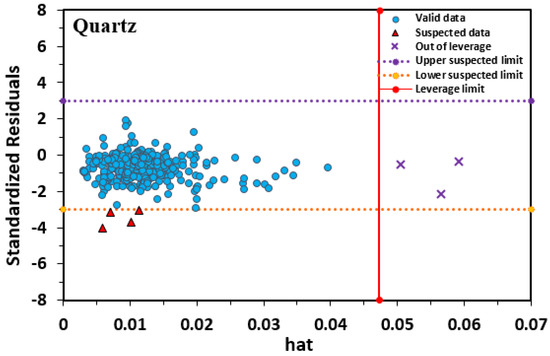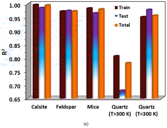 - Average absolute percent relative errors of the implemented model proposed for calcite, feldspar, mica, and quartz were obtained 5.66%, 1.56%, 14.44%, and 13.93%, respectively, which confirms the significant performance of the GEP algorithm.