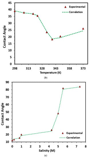 - Investigation of sensitivity analysis indicated that the contact angles of brine/CO2 on various minerals could be positively affected by salinity and pressure and negatively by temperature.