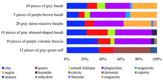 | B | gray-green dense massive basalt | 28 | 0.313–0.83 | 0.584 | 0.003–1.71 | 0.007 |
