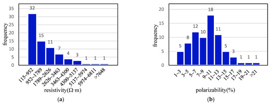 - The density, magnetic susceptibility, resistivity, and polarizability measurements show that the igneous rocks in southwestern Sichuan have a high density and high magnetic susceptibility. In particular, the strong magnetism of the basalts is more obvious than those of the other lithologies. The resistivity and polarizability of the igneous rocks vary widely, even within the same lithology, which indicates that the conductive mechanism of the igneous rocks is complex. Overall, the basalt in southwestern Sichuan is characterized by high density, high resistivity, and strong magnetism; the tuff is characterized by medium-high density, medium-high resistivity, and weak magnetism; and the volcanic breccia is characterized by a high density, medium-low resistivity, and strong magnetism. The comprehensive resistivity parameter, i.e., the polarizability, can be used as an important index parameter for determining the lithology and lithofacies of the igneous rocks and for reservoir evaluation.