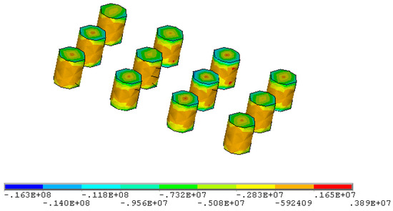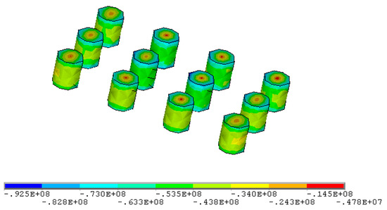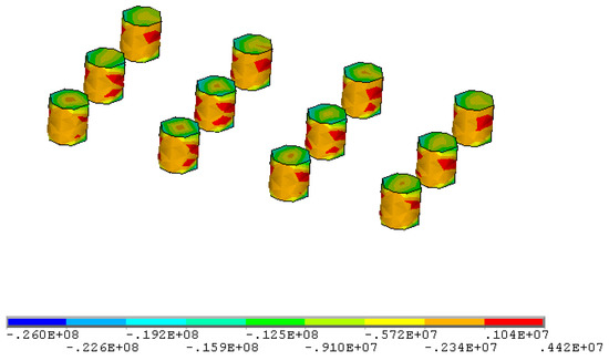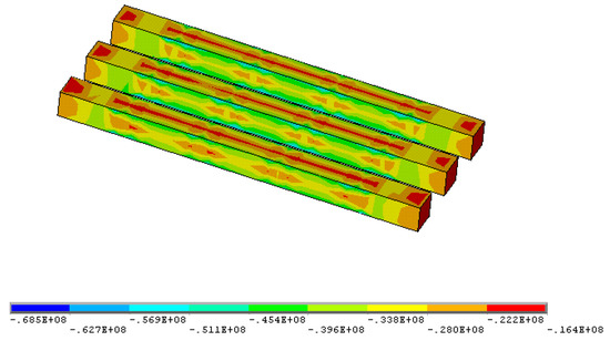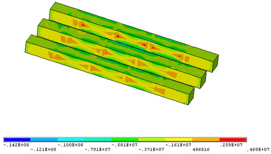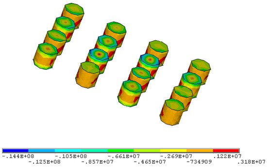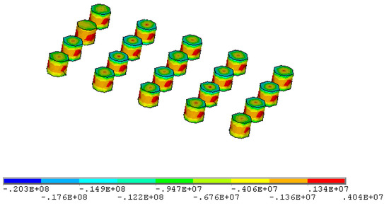 | 5 | τyz (MPa) | −0.67~0.70 | −21.7~22.9 | −25.3~25.8 |