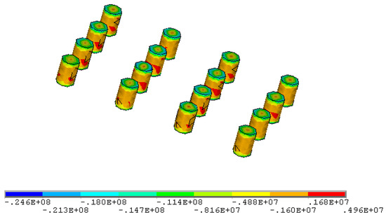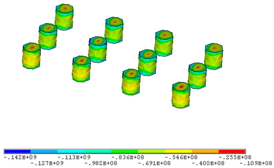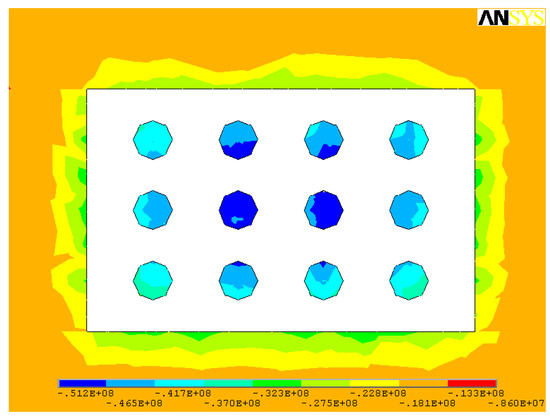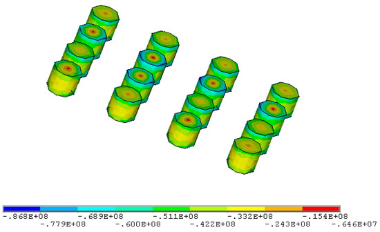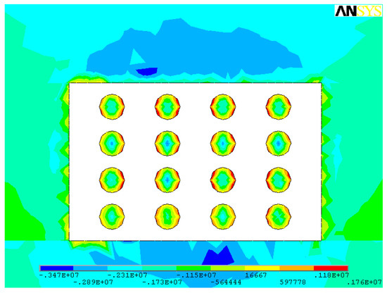 | 4 | τxy (MPa) | −0.15~0.12 | −1.70~−1.54 | −9.48~9.63 |