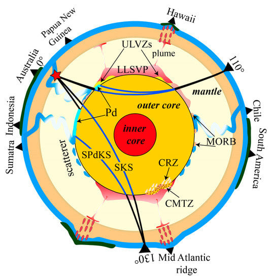 91. Jensen, K.J.; Thorne, M.S.; Rost, S. SPdKS analysis of ultralow-velocity zones beneath the western Pacific. Geophys. Res. Lett. 2013, 40, 4574–4578. [Google Scholar] [CrossRef] [Green Version]