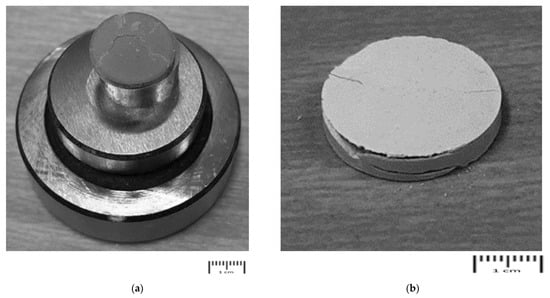 The samples produced without a binder from powder dried by vacuum-driven sterile filter and evaporation techniques resulted in fractured and incoherent pellets (Figure 5). For the other drying techniques, the usage of binders resulted in mechanically stable and robust pellets, in line with previous observations that binders increase the cohesion and compatibility of pressed pellets [6].