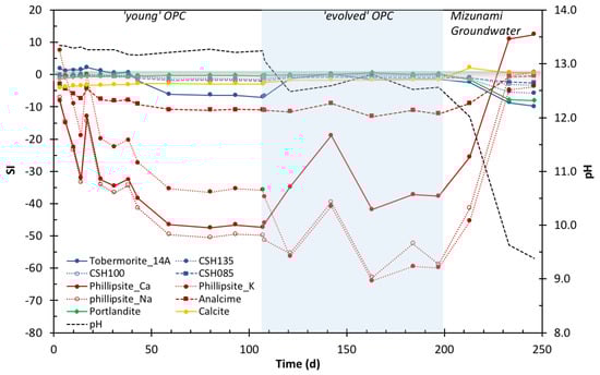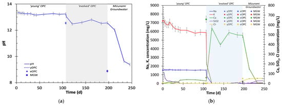 - Berner, U. Evolution of pore water chemistry during degradation of cement in a radioactive waste repository environment. Waste Manag. 1992, 12, 201–219. [Google Scholar] [CrossRef]