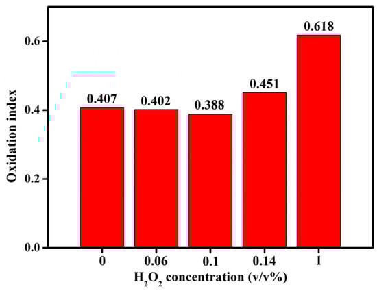 Surface oxidation index of chalcopyrite at different H2O2 concentrations.