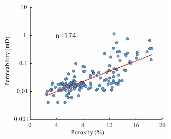 Relationship between porosity and permeability of the Permian Lucaogou Formation.