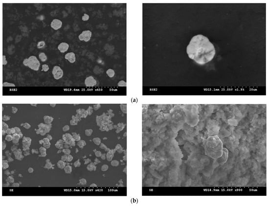 Encapsulation method B (ENCH-B) allowed for a constant composition environment to be maintained, i.e., it enabled a better control of supersaturation, and as a consequence, there was an improvement in the formation of scorodite@HAP solids. The SEM cross-section images of the encapsulated material revealed the majority of the scorodite particles to have been partially covered with hydroxyapatite; in addition, there was a significant occurrence of agglomerates of hydroxyapatite and scorodite sub-particles.