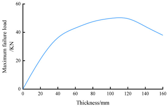 Relationship curve of maximum failure load and thickness.