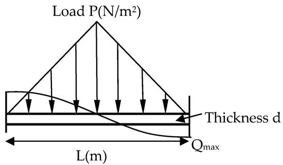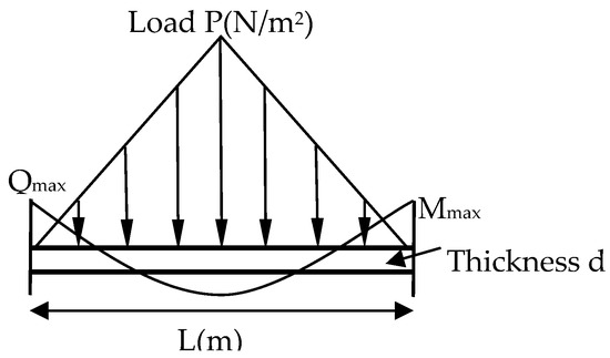 where, d is the spray layer thickness; p is load; l is the size of dangerous rock; b is the size of dangerous rock along the longitudinal direction of roadway; is the allowable shear strength; , is the shear strength of shotcrete; is the uniaxial compressive strength of shotcrete; is the safety factor.