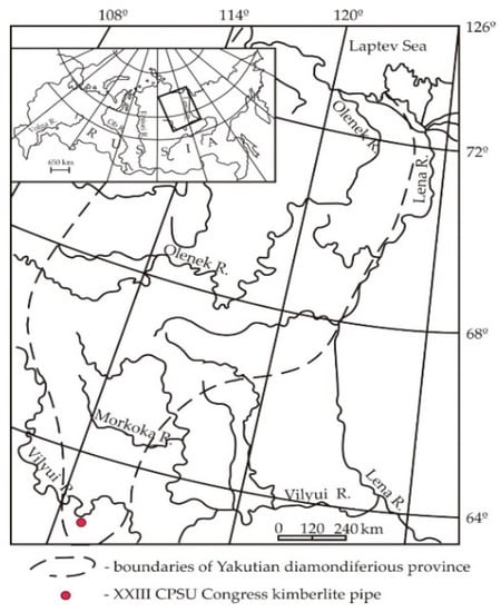 Location of the XXIII CPSU Congress kimberlite pipe in Yakutia.