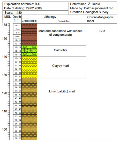 In the exploitation field “St. Juraj–St. Kajo” there are seven different lithological units [23,25] sorted as depositional sequences. They can be divided based on CaCO3 content variations after [29]: