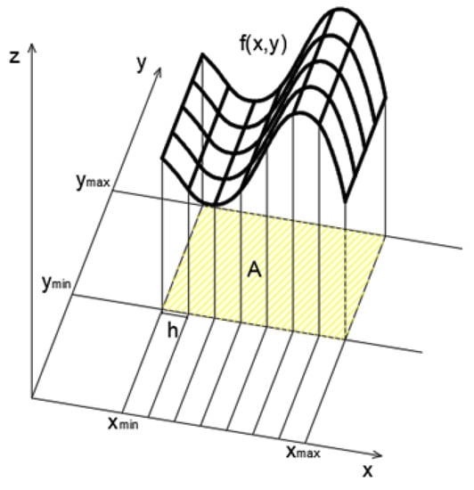 Rules for integrating a function f (x, y) between a lower limit (xmin; ymin) and an upper limit (xmax; ymax), over a particular number of intervals, are based on numerical formulas for equally spaced lags (h) (Figure 5). As the number of intervals increases, rules for polynomials of high order are used. The range interval range is denoted by a (xmin) and b (xmax).