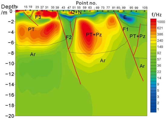 Through the MT profile from Taihang Mountain south of Shijiazhuang to the Jizhong Depression, predecessors have concluded that the lithospheric electrical properties have the characteristics of vertical stratification and horizontal block [25]. Moreover, the electrical structures of the Taihang Mountain uplift belt and the Jizhong Depression are completely different. The Taihang Mountain uplift belt is a high-resistance body. In the basin area, the electrical properties in the crust are roughly distributed in layers, and low-resistivity layers developed from the surface to a depth of about 7 km. These low-resistivity layers should be the Upper Paleogene Formation (E–Q) and composed of loose sediments.