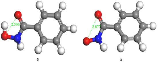 Optimized geometries of (a) BHA and (b) BHA− (O = red, H = white, N = blue) [77].