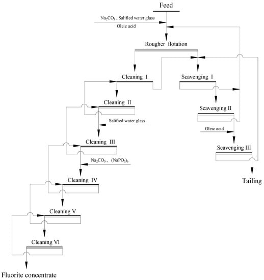 - Zhang, Y.; Song, S. Beneficiation of fluorite by flotation in a new chemical scheme. Miner. Eng. 2003, 16, 597–600. [Google Scholar] [CrossRef]