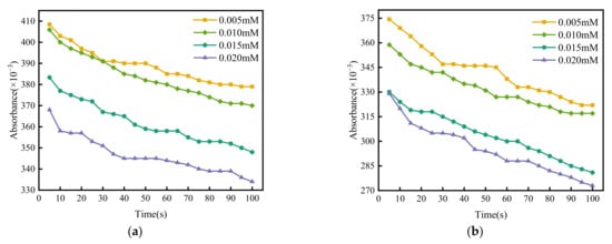 After adding coagulant with different concentrations into a coal slurry, the absorbance of the solution changed with time as shown in Figure 1.