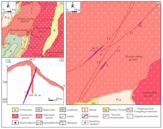Li, G.; Fang, G.; Feng, Z.; Xu, C.; Huang, Z.; Wang, C. Genetic Relationship between Granite and Fluorite Mineralization in the Shuanghuajiang Fluorite Deposit, Northern Guangxi, South China: Evidence from Geochronology, REE, and Fluid Geochemistry. Minerals 2022, 12, 1102. https://doi.org/10.3390/min12091102