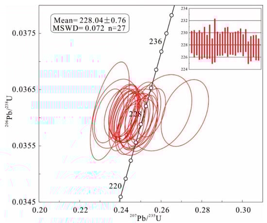 - Hu, H.; Wang, R.C.; Chen, W.F.; Chen, P.R.; Ling, H.F.; Liu, G.N. Timing of hydrothermal activity associated with the Douzhashan uranium-bearing granite and its significance for uranium mineralization in northeastern Guangxi, China. Chin. Sci. Bull. 2013, 58, 4319–4328. [Google Scholar] [CrossRef] [Green Version]
