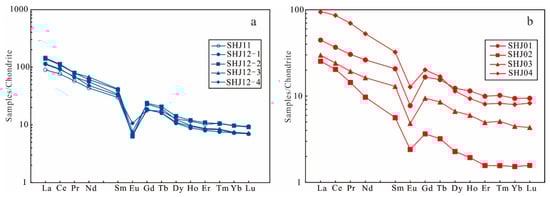 | Samples | SHJ01 Fluorite | SHJ02 Fluorite | SHJ03 Fluorite | SHJ04 Fluorite | SHJ11 Granite | SHJ12-1 Granite | SHJ12-2 Granite | SHJ12-3 Granite | SHJ12-4 Granite |