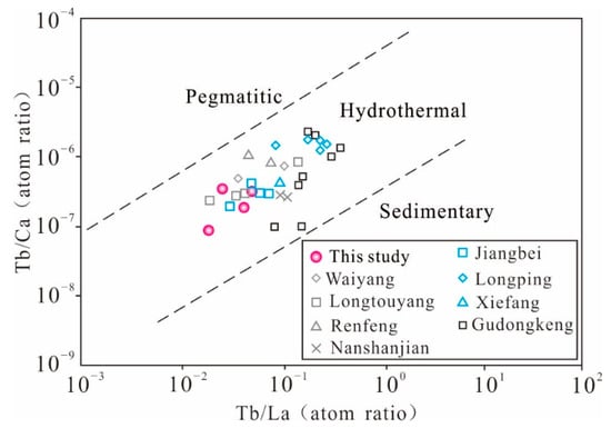 - Cao, J.C. REE geochemical characteristics of epithermal vein fluorite deposits in South China. Geochimica 1995, 24, 225–234, (In Chinese with English Abstract). [Google Scholar]