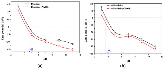 - Zhang, N.; Nguyen, A.V.; Zhou, C. Impact of interfacial Al- and Si-active sites on theelectrokinetic properties, surfactant adsorption and floatability of diaspore and kaolinite minerals. Miner. Eng. 2018, 122, 258–266. [Google Scholar] [CrossRef]