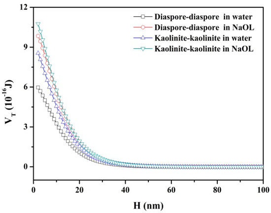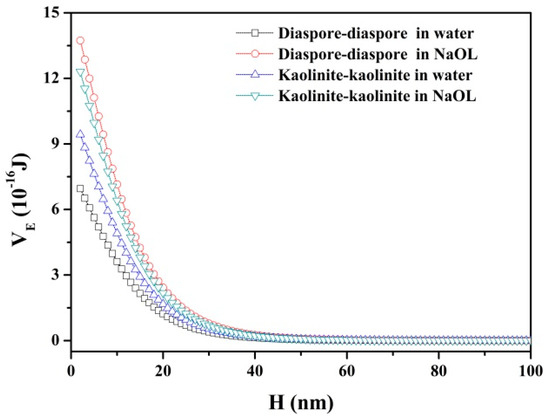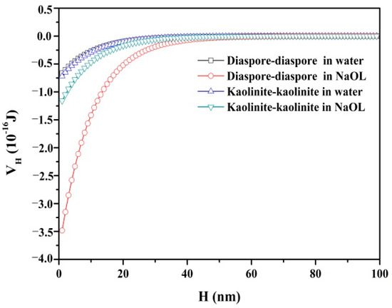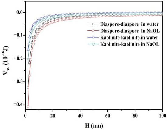 3.2. Interaction Energy between Mineral Particles