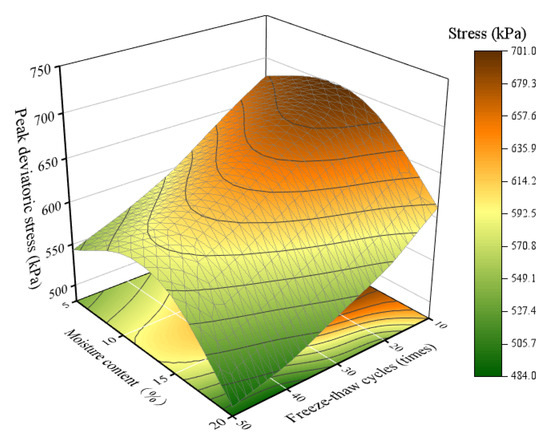 Through triaxial tests, the effects of freeze–thaw cycle times, moisture content, and confining pressures on the shear strength of tailings were studied. The following is a detailed discussion based on the test results.
