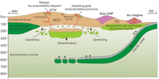 Figure 11. Schematic model of the Cretaceous tectonic evolution, magmatism, and mineralization in the northern Taihang Mountains, North China Craton. NCC: North China Craton; YC: Yangtze Craton; NTM: Northern Taihang Mountain.