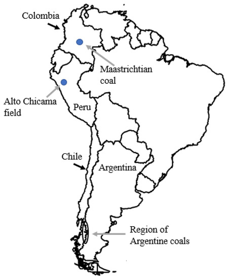 Argentina has Neocomian coals in western Santa Cruz Province, Senonian coals in the Comodora Rivadavia region, and Danian coals in Chubut Province, all of these flanking the Andes in Patagonia (Figure 9) [81]. As with the Colombian coals, modern analyses are not readily available.