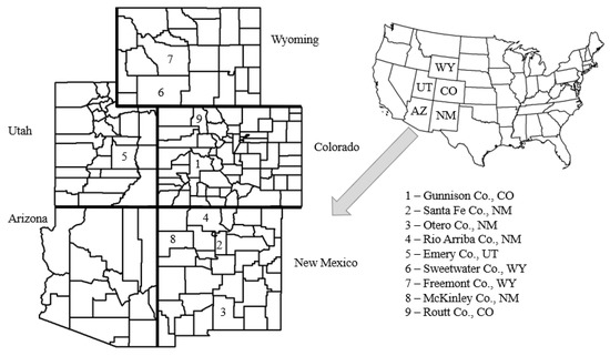 - Clarkson, G.; Reiter, M. The thermal regime of the San Juan Basin since the Late Cretaceous and its relationship to San Juan Mountains thermal sources. J. Volcanol. Geotherm. Res. 1987, 31, 217–237. [Google Scholar] [CrossRef]