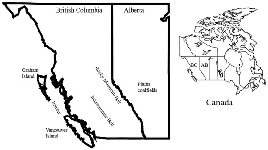 - Van der Flier-Keller, E.; Goodarzi, F. Regional variations in coal quality in the Canadian Cordillera. Geol. Soc. Am. Spec. Pap. 1992, 267, 165–175. [Google Scholar]