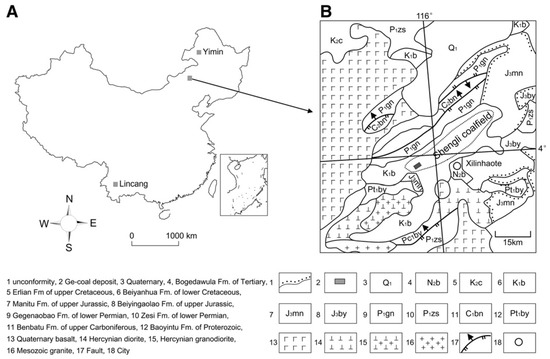 - Li, J.; Zhuang, X.; Querol, X.; Font, O.; Izquierdo, M.; Wang, Z. New data on mineralogy and geochemistry of high-Ge coals in the Yimin coalfield, Inner Mongolia, China. Int. J. Coal Geol. 2014, 125, 10–21. [Google Scholar] [CrossRef]