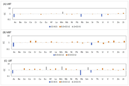 - McLennan, S.M. Relationship between trace element composition of sedimentary rocks and upper continental crust. Geochem. Geophys. Geosyst. 2001, 2, 1–24. [Google Scholar] [CrossRef]