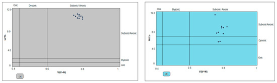 Under this oxic condition, elements such as V, Ni, Fe, Mn, Mo, and sulphate are normally present in soluble species in the form of V5+, Ni2+, Fe3+, Mn4+, Mo6+, and SO46+, respectively, in the water column. At the same time, the aerobic degradation of organic matter continues until the dissolved oxygen is less than 0.2 mL/L H2O [42]. Deficiency of oxygen has been adduced to climate, sea-level changes, tectonic activities, and hydrographic factors, resulting in insufficient oxygen supply to oxidise the organic materials [43,44]. Below this oxygen concentration, anaerobic condition and degradation of organic matter begin and reduce the oxidising elements to insoluble species of V4+, Ni, Fe2+, Mn2+, thiomolybdate oxyanion (MoO42−) and SO42+, which eventually concentrate in shale sediments [27].