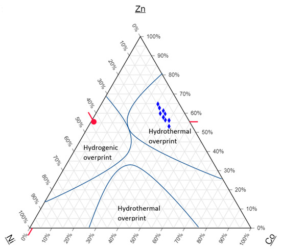 Zn-Ni-Co hydrothermal diagram of the represented studied shale samples [27].