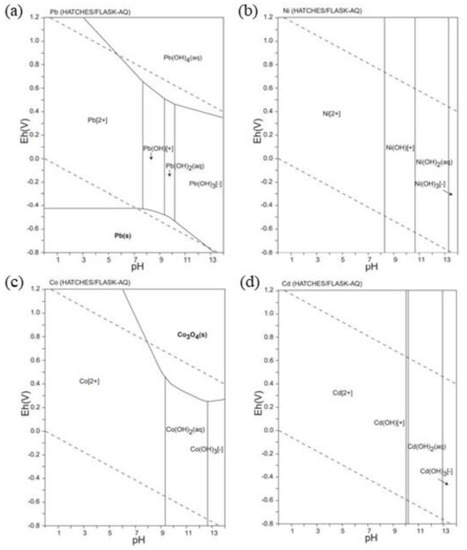 - Takeno, N. Atlas of Eh-PH Diagrams Intercomparison of Thermodynamic Databases; National Institute of Advanced Industrial Science and Technology: Tokyo, Japan, 2005; Volume 285. [Google Scholar]