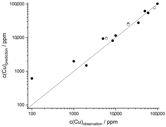 In contrast to the Polish samples (c(Cu) = 0.8–2.4%), the Cypriot samples (c(Cu) = 41–10,000 ppm) possess a much lower concentration of copper. This seems to be the reason for the weaker correlation of the data. The necessary addition of the field samples to the training data shows that the matrix effects of the field samples influence the calibration. Since the complex chemical composition of the field samples cannot be represented in the synthetic samples, the addition of some field samples to the calibration data is a reasonable way.